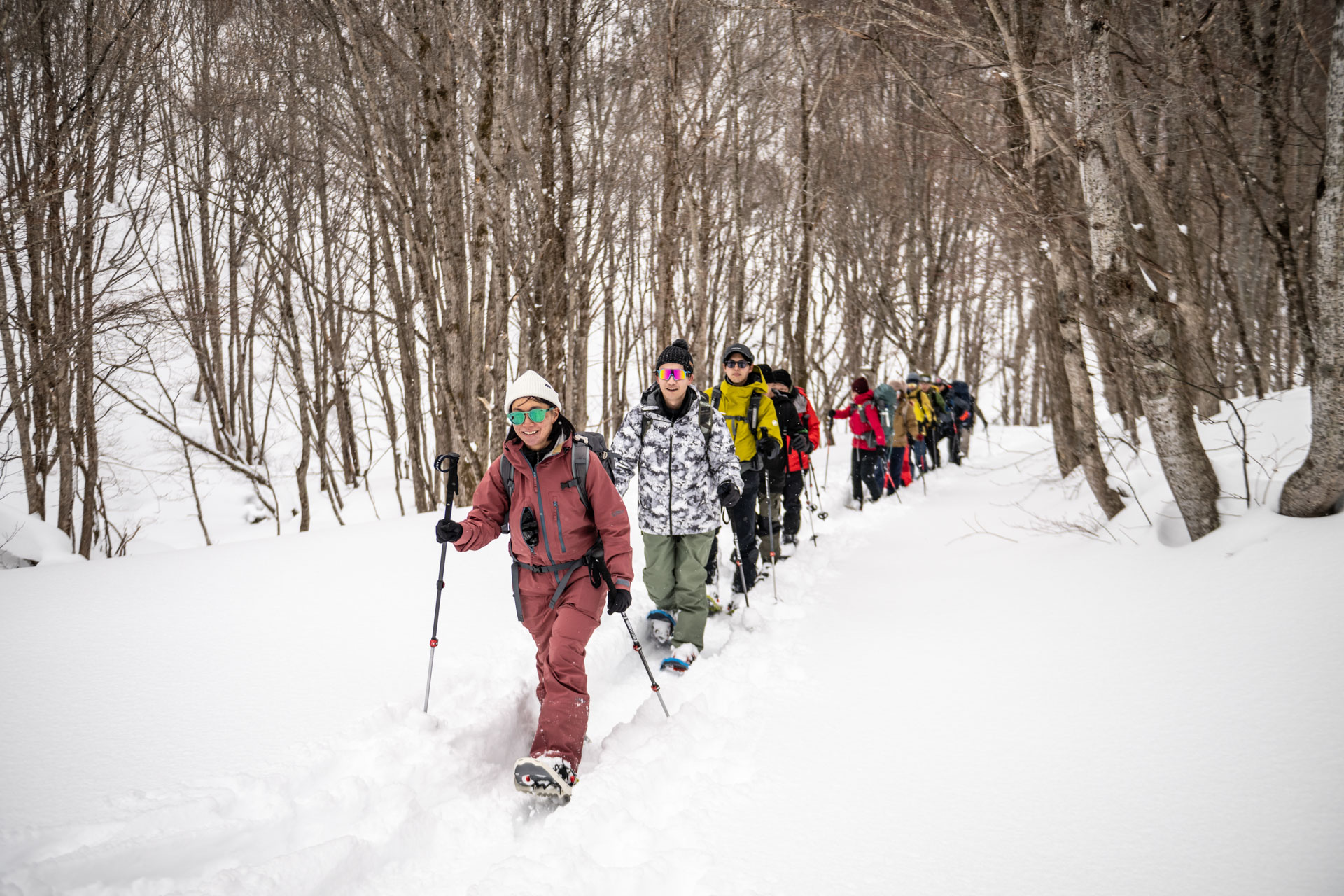 昨今、雪山で遊びたい人が急増しているのか、スノーシューハイキングの問い合わせが増えている。湯治のついでにちょっと雪山を散歩したい方や、スキーやスノーボードはしないけれど冬も雪山で遊びたい方、日本の雪景色を見たいインバウンドの皆さんなど、そのニーズは幅広い。