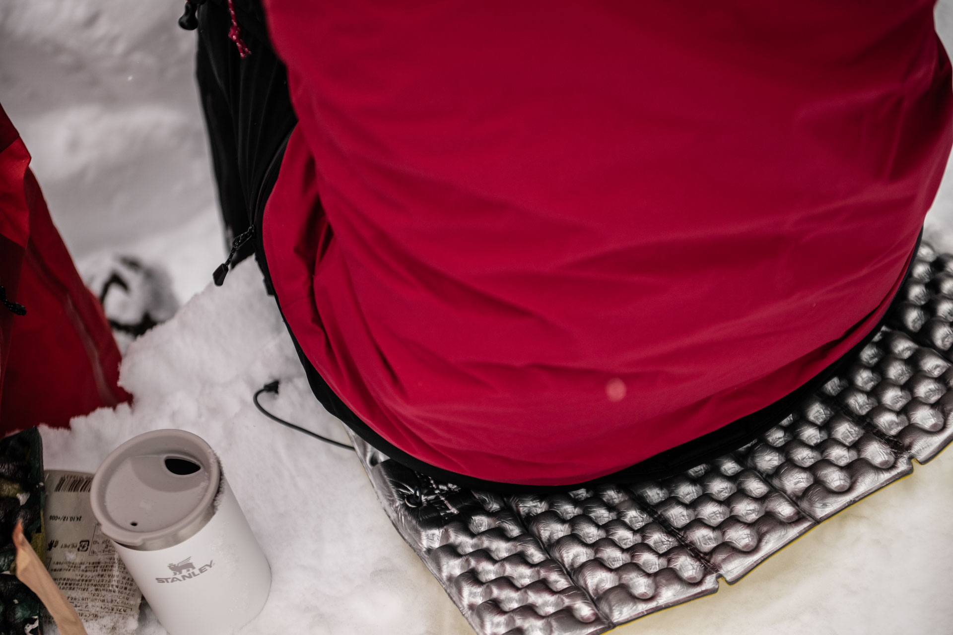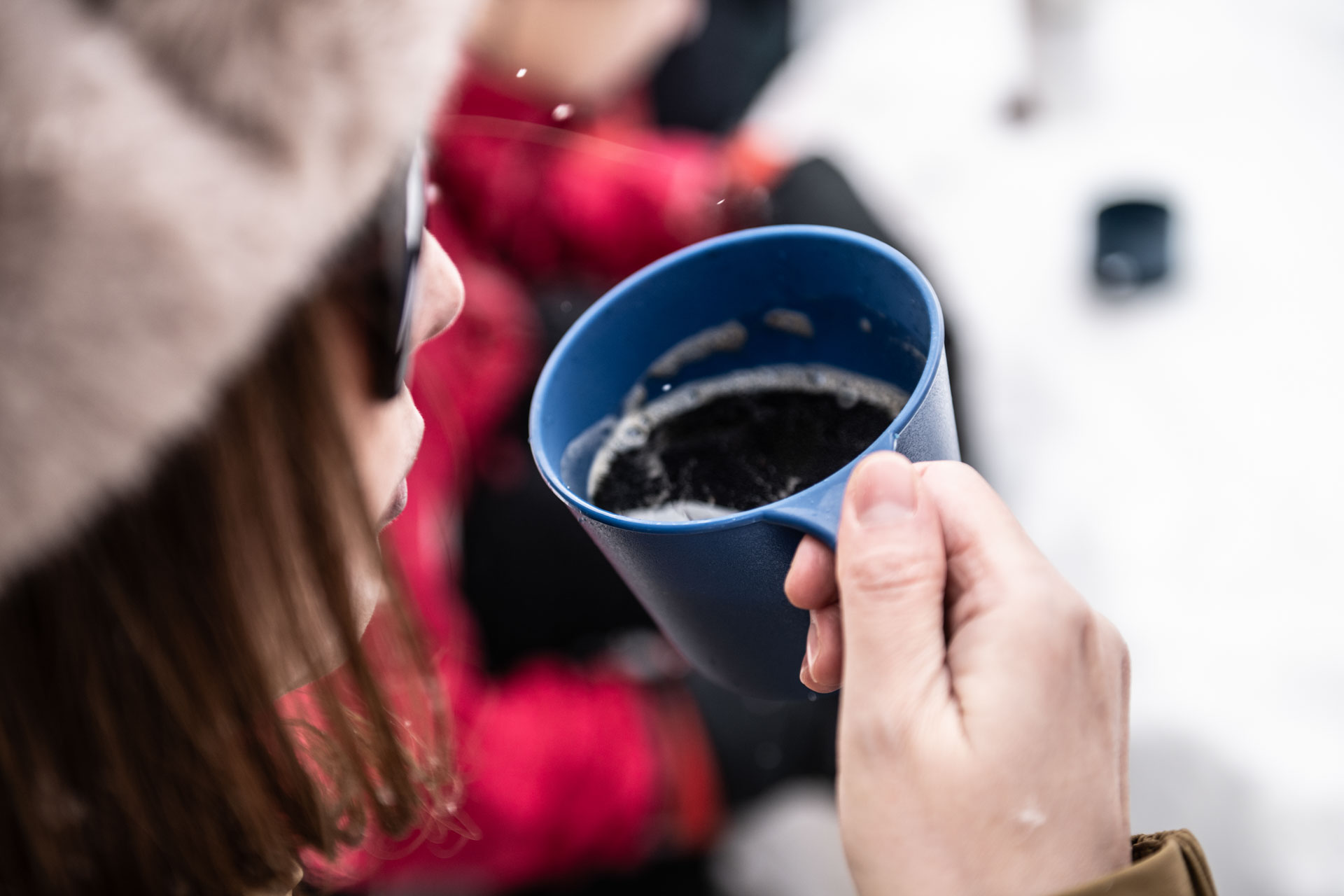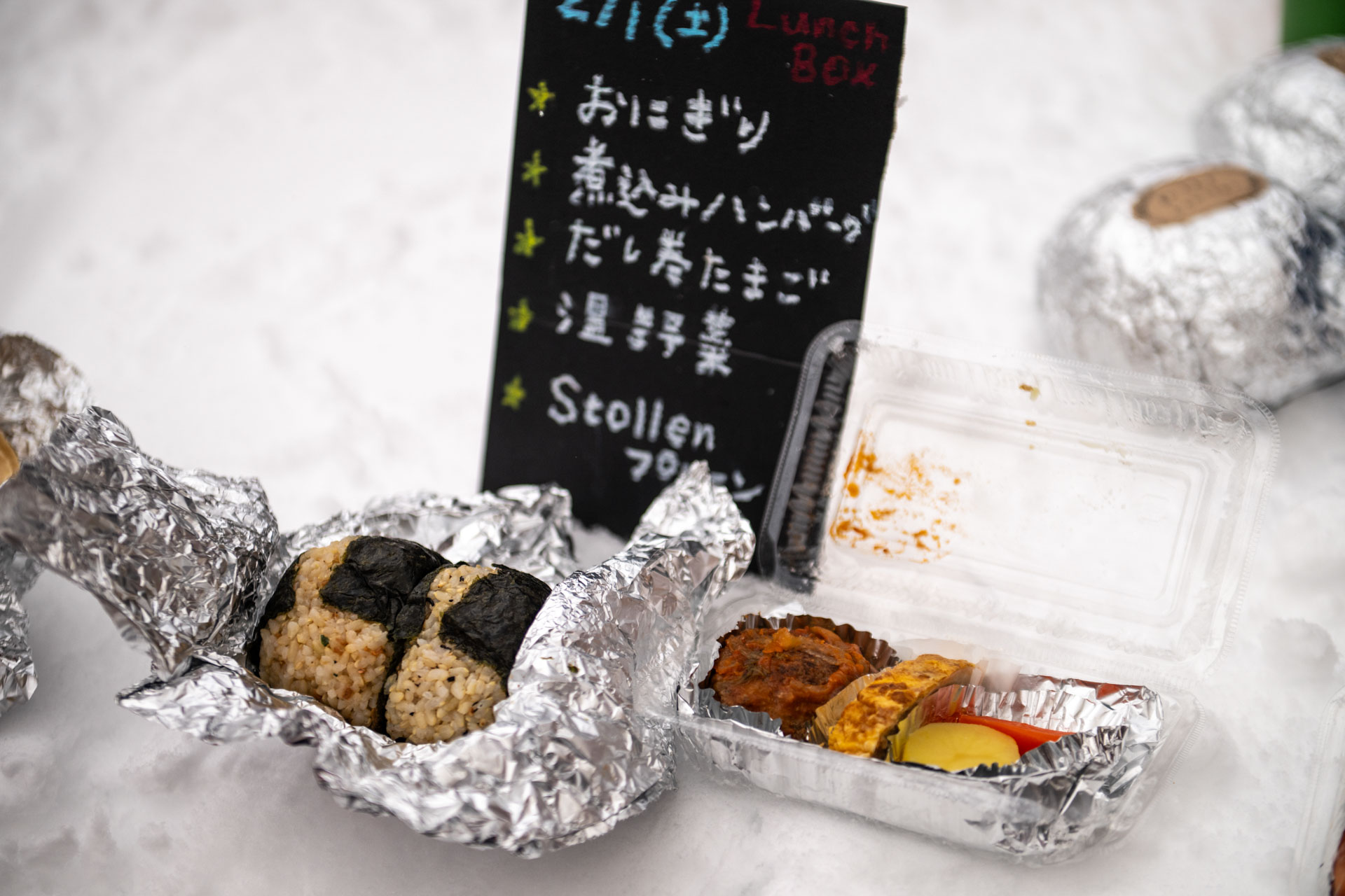 ランチボックスは、地元レストランのシェフが地元の食材を使用して毎朝作ってくれている。自分たちで作った雪のテーブルを囲んでいただくランチに舌鼓しながら、みんな自然と笑顔が溢れ、会話が弾む。MSRのストーブでおいしいお茶も入れていただき、デザートとともに、フルコースでランチタイムを満喫した。はじめて顔を合わせるメンバーがほとんどだったが、こうして山時間を共有することで、だんだんと互いの距離も縮んでいく。山のマジックはいつだってすばらしい。