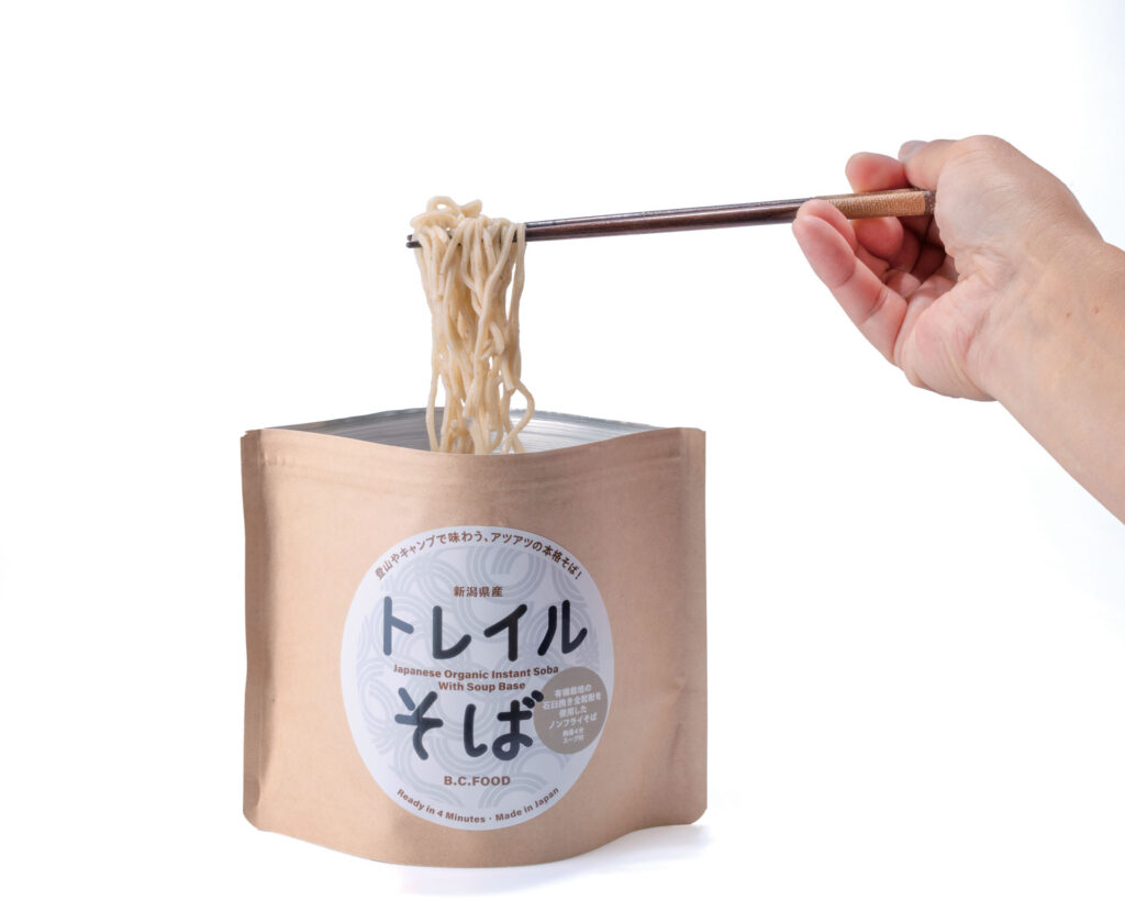 即席麺でありながら、生麺のようにもっちりとした食感と、そば本来の豊かな香りと味わいを併せ持つ「トレイルそば」。アウトドアで手軽に食べられるという利便性だけでなく、純粋に「おいしい」こと自体が、大きな魅力である。