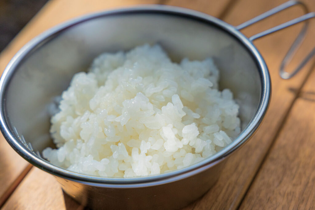 加熱が完了し、10分ほど蒸らせば、ほらご覧のとおり。SHŪHŌの保温力でふっくらご飯の炊き上がり!