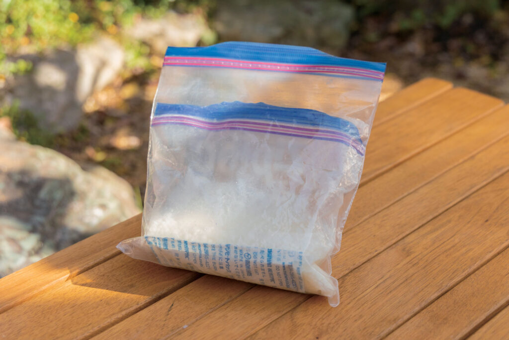 次の手順でかなり熱くなるため、密閉袋は耐熱温度の高いジップロックやポリ袋を使うこと。
