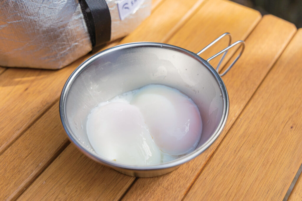 SHŪHŌフードネストの保温力を実感できるのが「温泉たまご」作り。